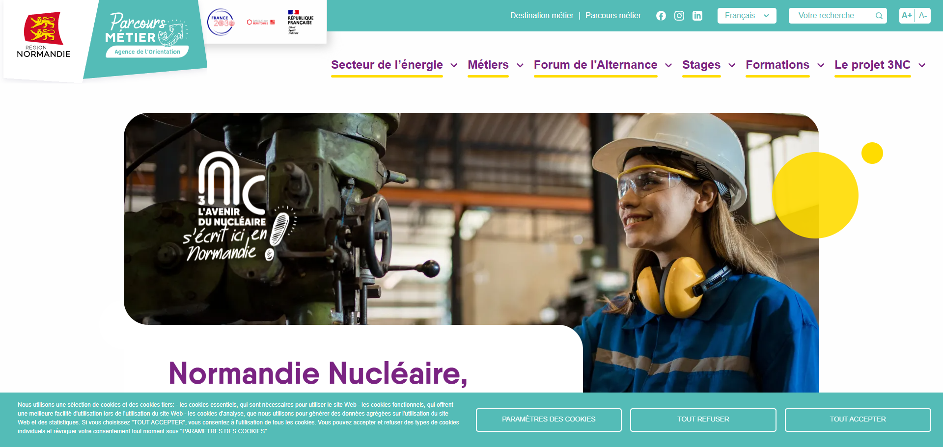 Site vitrine pour l'initiative régionale 3NC (Normandie Nucléaire, Nouvelles Compétences), qui promeut les formations et métiers du secteur nucléaire en Normandie. Réalisé en alternance chez Plume SAS.